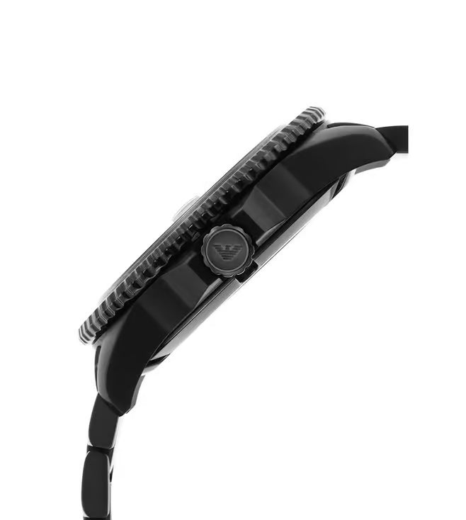 Designed to suit the preference of urban men, this analog watch from Emporio Armani is sure to make a style statement. Secured by a mineral glass, the grey round dial is protected in a case. It exhibits plain 3-hand, and a crown for time adjustment. The strap flaunts a black hue that accentuates the look of the watch. Moreover, it is fitted with a fold-over clasp with double push button safety clasp to ensure a secure fit on the wrist.